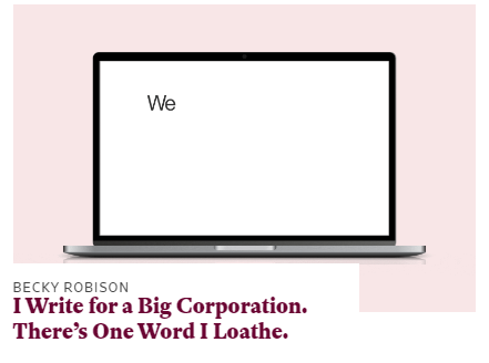 The corporate We, however, can serve to obfuscate. Every time I use it, I’m describing a culture of care that doesn’t truly exist.